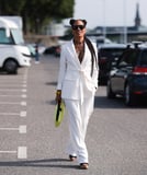Whether it's worn for a bridal shower, wedding rehearsal, or reception, a pantsuit makes a practical silhouette as it often contains pockets. Take it from Solange Knowles, who went that route on Nov. 16, 2014, when she married Alan Ferguson (her now ex-husband) in New Orleans. She styled an off-white plunging jumpsuit with a matching ankle-length cape as a prewedding ensemble. Meanwhile, Emily Ratajkowski followed in Knowles's footsteps four years later, when she married Sebastian Bear-McClard (who she is now divorcing) in a tangerine Zara pantsuit. These stars created their own rulebook and proved adopting a new wedding look can still come off quite chic.